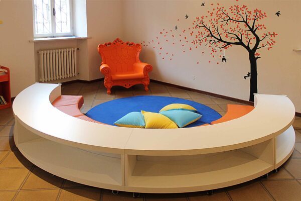- Acquisto arredi e sedute per creare un angolo morbido nella sala che potrà essere delimitato con una struttura ancorata alle pareti perimetrali e completato con apposite decorazioni murali.